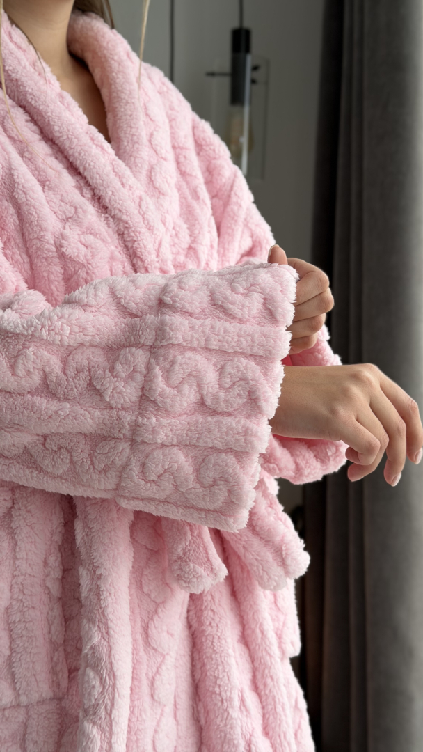 Уютный махровый халат окутывает теплом и комфортом с первых минут. Мягкая плюшевая ткань приятна к телу, отлично согревает после душа или в прохладные утренние часы. Свободный крой с поясом подчеркивает талию, а удобные карманы добавляют практичности для повседневного домашнего ношения.