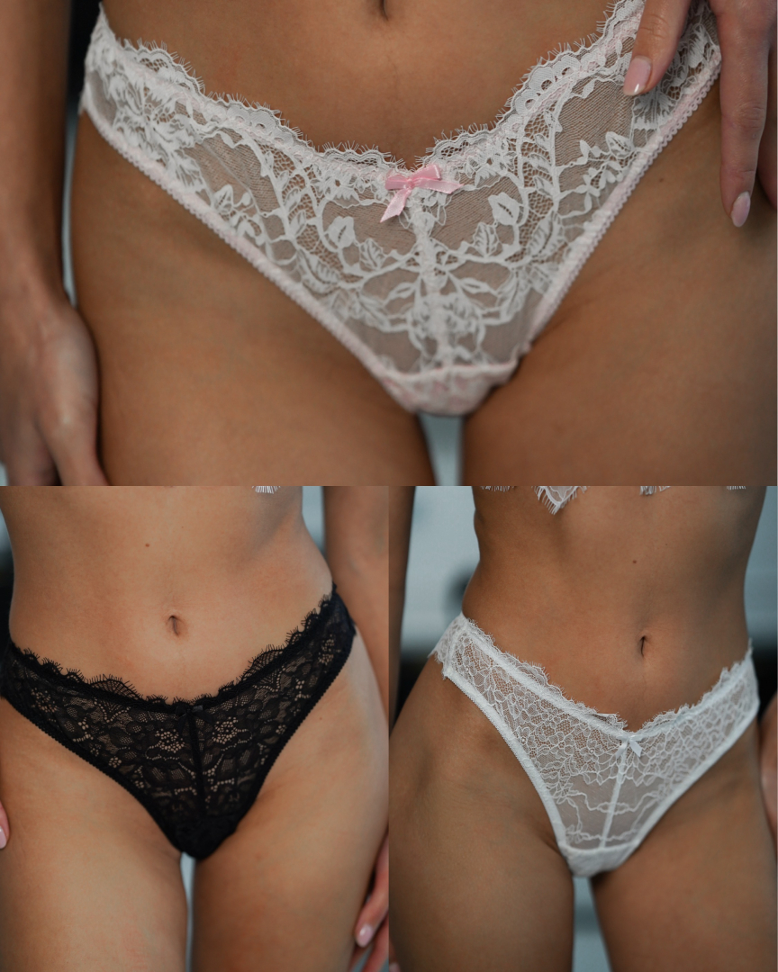 Трикомплект Arfa — это нежные трусики из кружевного полотна в фасоне бразильяна, которые сочетают комфорт и красивый подчёркнутый силуэт. Мягкое эластичное кружево аккуратно прилегает к телу и удобно ощущается в течение дня.