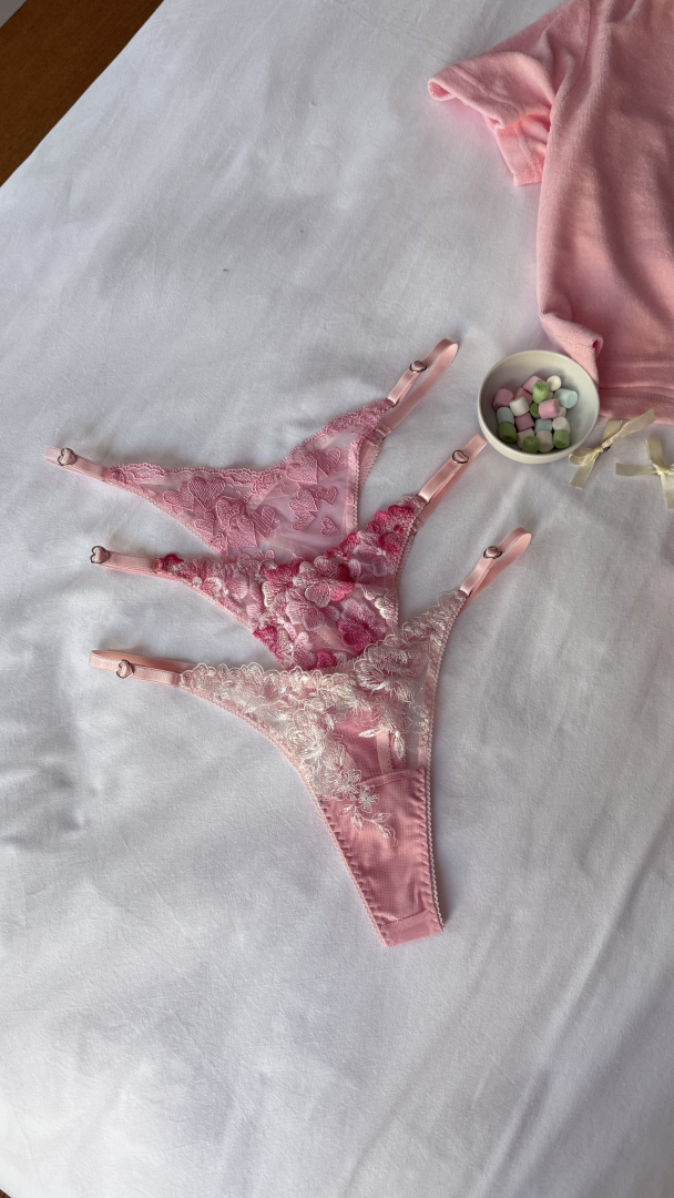 Изысканный набор черных кружевных стрингов — сочетание нежности и соблазна.